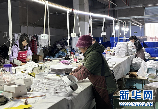 2月11日,金恒星社区居民在制衣厂工作。新华网发(袁梦雨 摄)