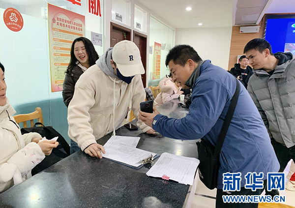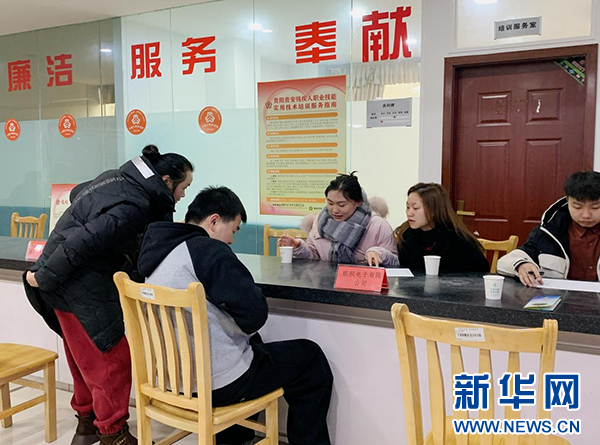 志愿者在辅导求职者进行职业能力测试。新华网发(邓琴 摄)