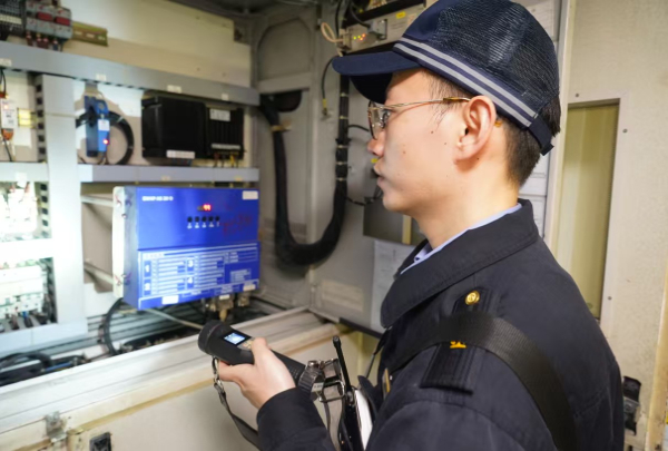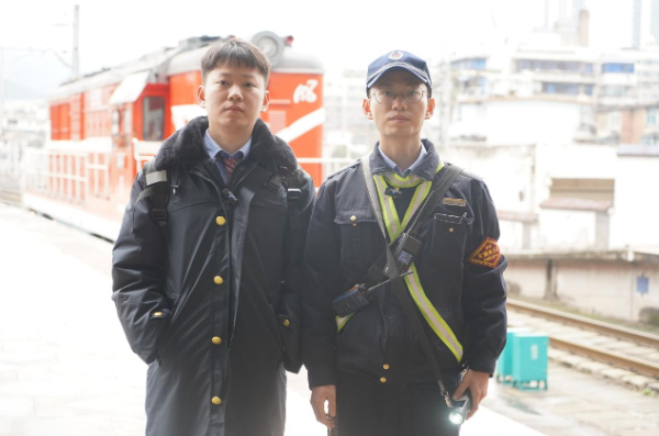 2月22日中午,贵阳站内,引擎低鸣,中国铁路成都局集团公司贵阳机务段司机姜万佳与贵阳车辆段车辆乘务员姜万磊正在做发车前的准备,这是2025年春运的最后一趟临客列车,也是这对铁路双胞胎入路八年来首次同车值乘。