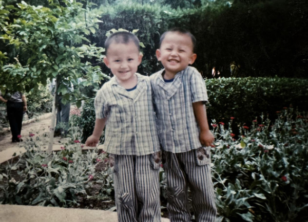 次日,兄弟二人在月台上合照。(刘成 摄)