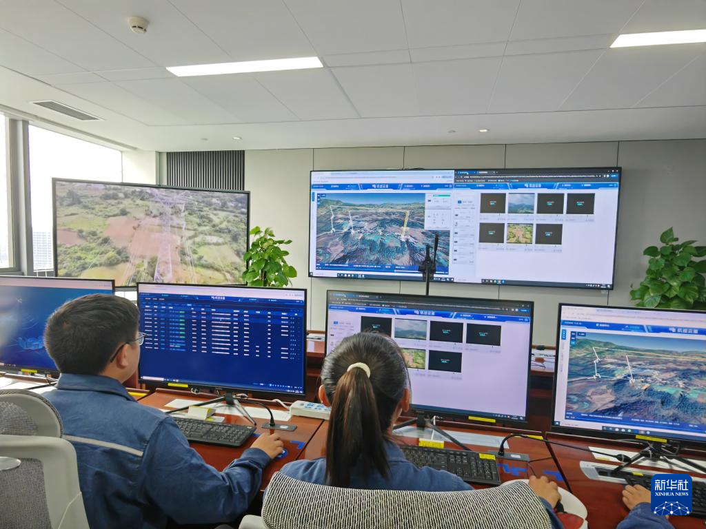 电网公司工作人员在后台监控无人机巡检。新华社记者 向定杰 摄