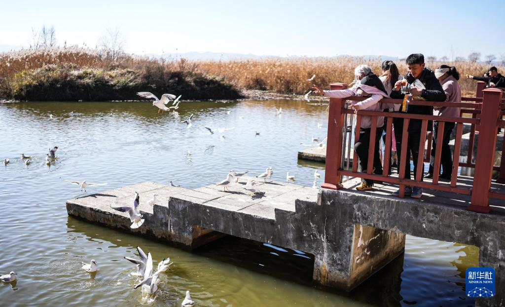 12月12日,市民在贵州草海国家级自然保护区观赏越冬候鸟。新华社记者 陶亮 摄